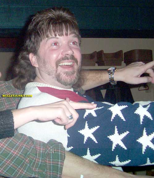 Our first good example of a mullet succeeding in society with a professional occupation. Congratulations Doctor Mullet, we salute you. What kind of doctor, from what country, I have no idea. One might say he's a Christian missionary veterinarian that's been sent to a random third world country. However, I will stay optimistic and guess a free clinic in Detroit. |