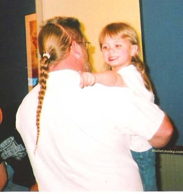 The haircut with a duel function: Business on top, and a raging party out back. We see many middle aged men opting for this symbolic cut. They want the best of both worlds. A respectable job during the week, then go nuts on the weekend. We see 2 good examples of this: A kind of gray, wispy wooly mull, and the other a dyed permullet. It is a strange phenomenon and even stranger that both of these men look freakishly similar just with 2 completely different mullets. Common traits: