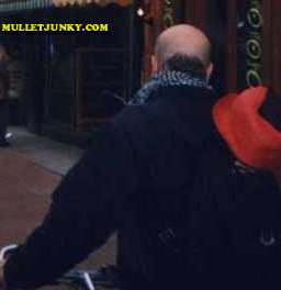 | BULLET or FORCEKULLET-(bûl-ït), (fôrs-kyõõ-lët) n. Someone with a mullet who is balding. The outcome is a forced skullet. (Common) |
